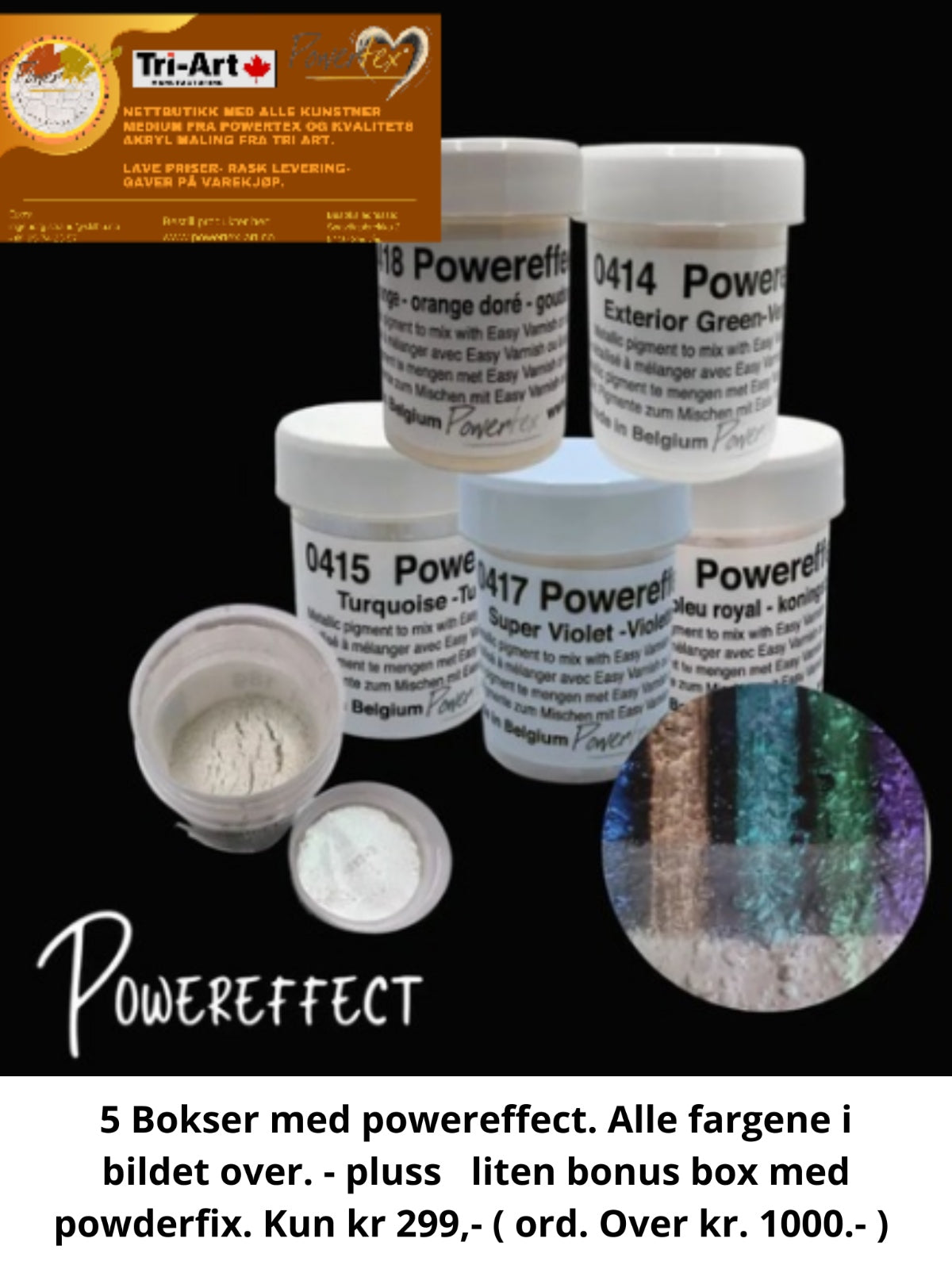 5 nydelige power effect tørre pigment farger, og litt powderfix.
