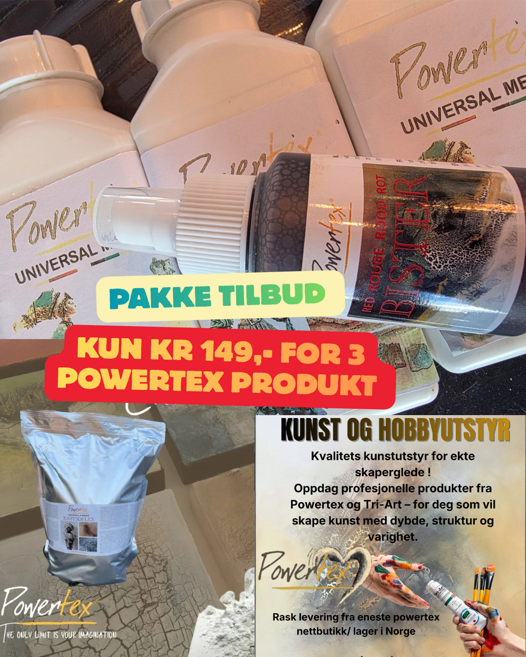 Powertex og Tri - Art sine hovedprodukt til struktur og mix media.