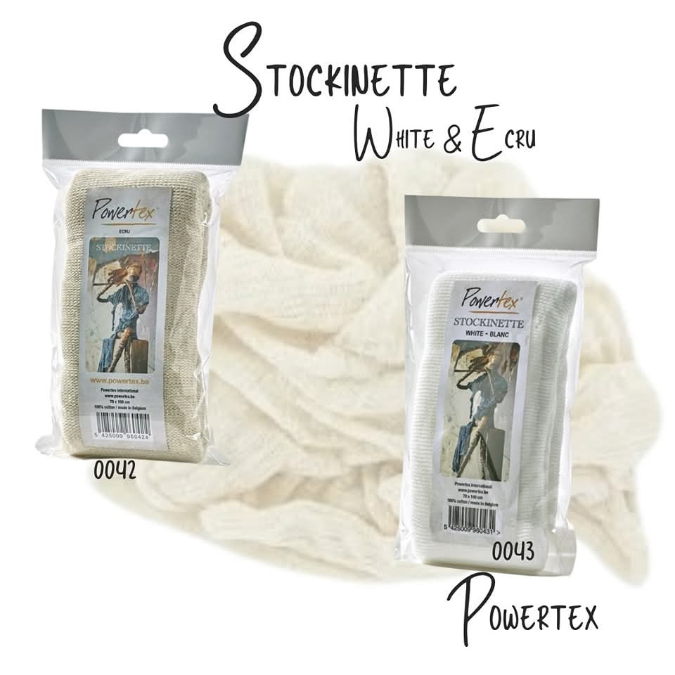 Stockinette kan dyppes i universalmedium, strekkes og legges til hvilken som helst skulptur eller mixed media kunstverk for å skape nydelige tekstureffekt.